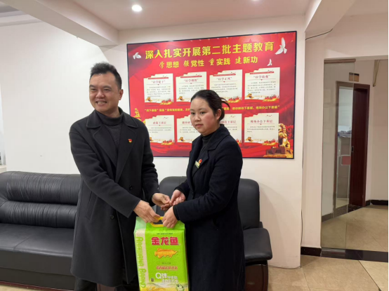 党群工作部部长游俊灿受公司党委书记、董事长委托前往汇东投资公司看望慰问3名困难党员,代为传递公司党委的深切关怀与新春问候。与困难党员逐一深入交谈,详细询问他们的身体近况、家庭生活等情况,认真了解工作和生活中的实际困难,悉心叮嘱大家注意保重身体,安心度过新春佳节,同时转达了公司党委书记、董事长的关心与嘱托,为他们送上慰问金和慰问品。