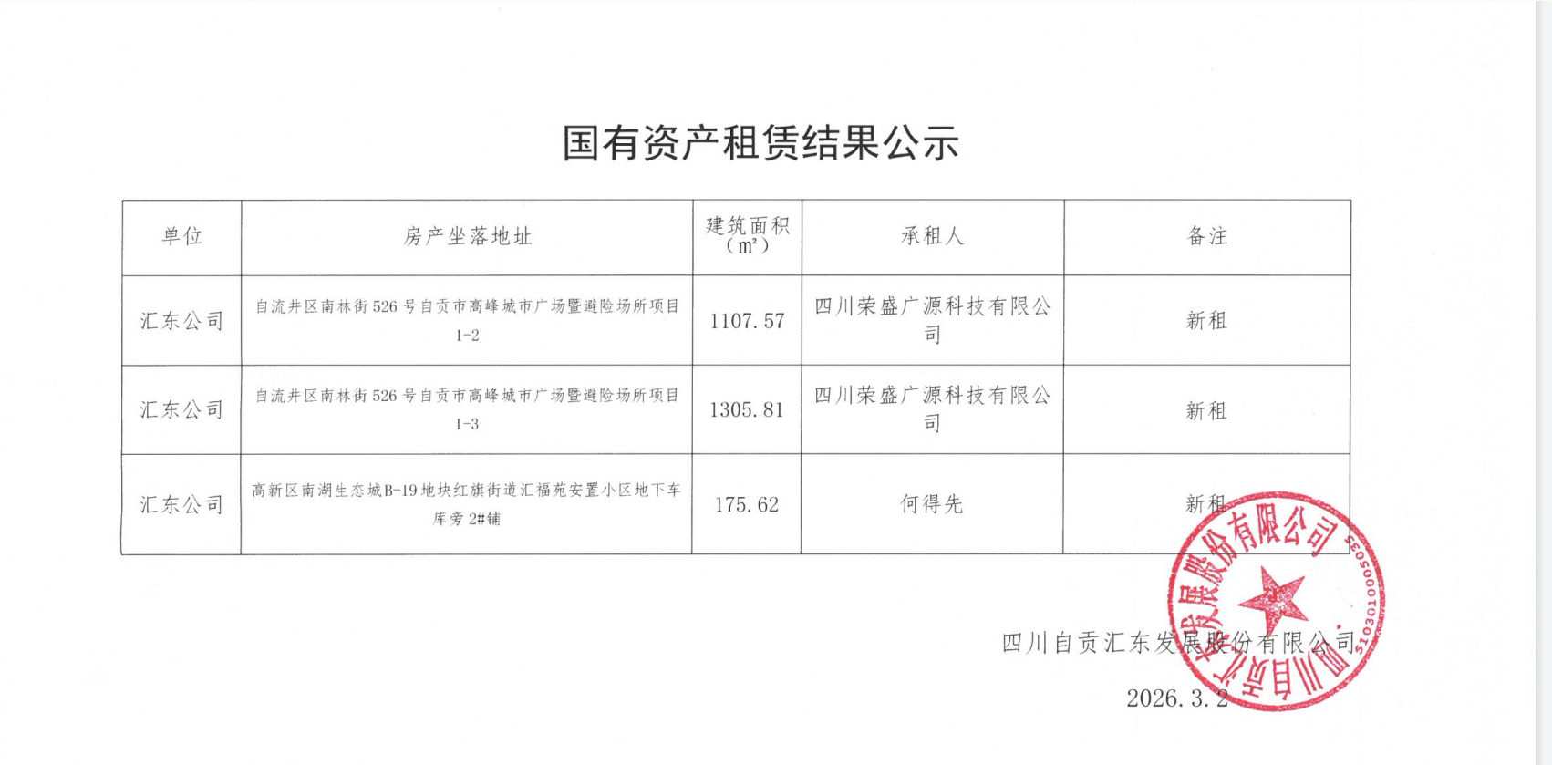 国有资产租赁结果公示